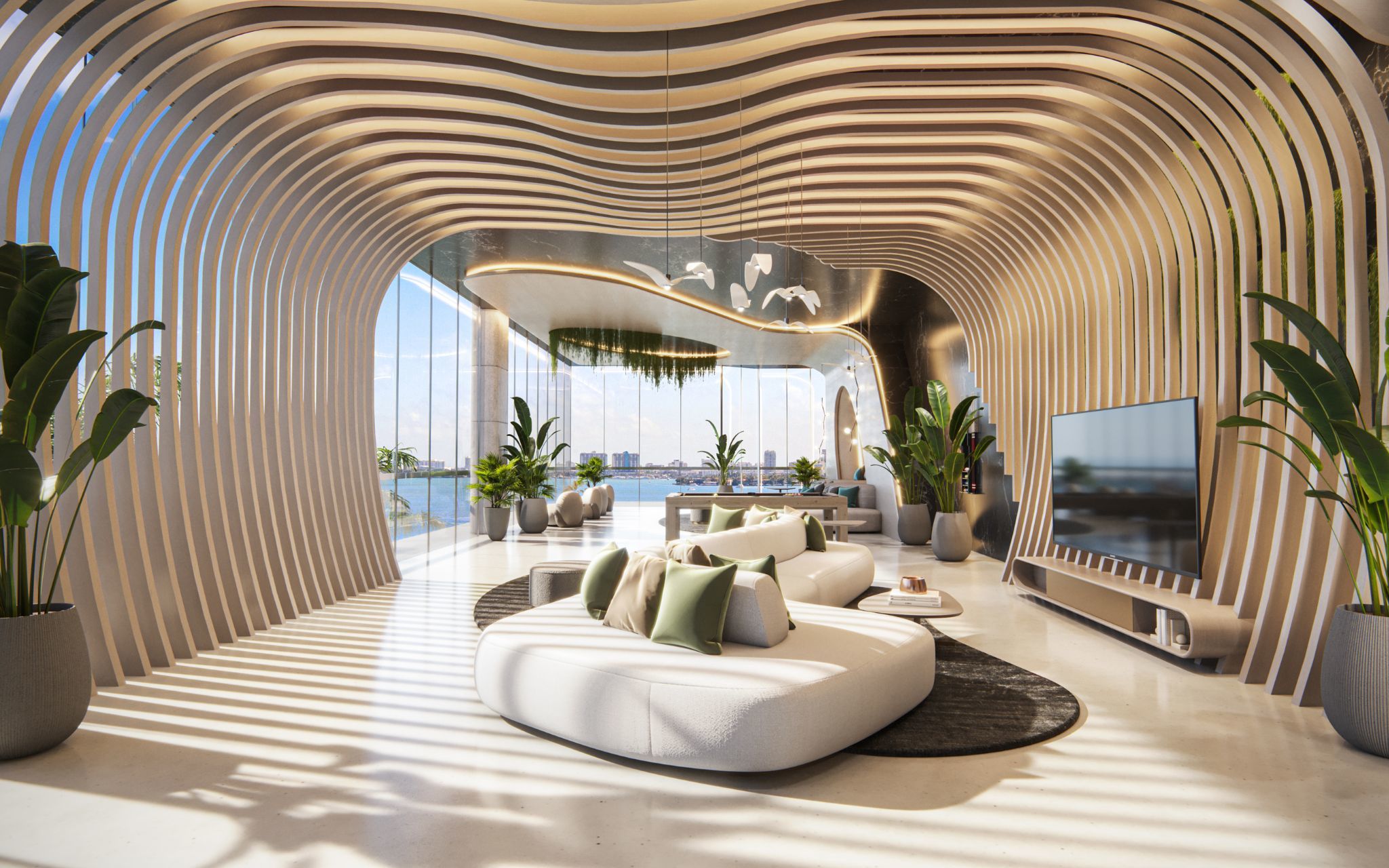 Acclaimed to be the tallest waterfront residential twin towers in the United States, Aria Reserve is a spectacular 62-story structural marvel designed by Arquitectonica in partnership with The Melo Group. The towers are enclosed in an intricate landscape with thoughtfully-placed world-class facilities and amenities, courtesy of ArqGEO. The South Florida tropical appeal is further emphasized by the biophilic interior and impeccable couture furniture from esteemed design house, Morada Haute Furniture Boutique.