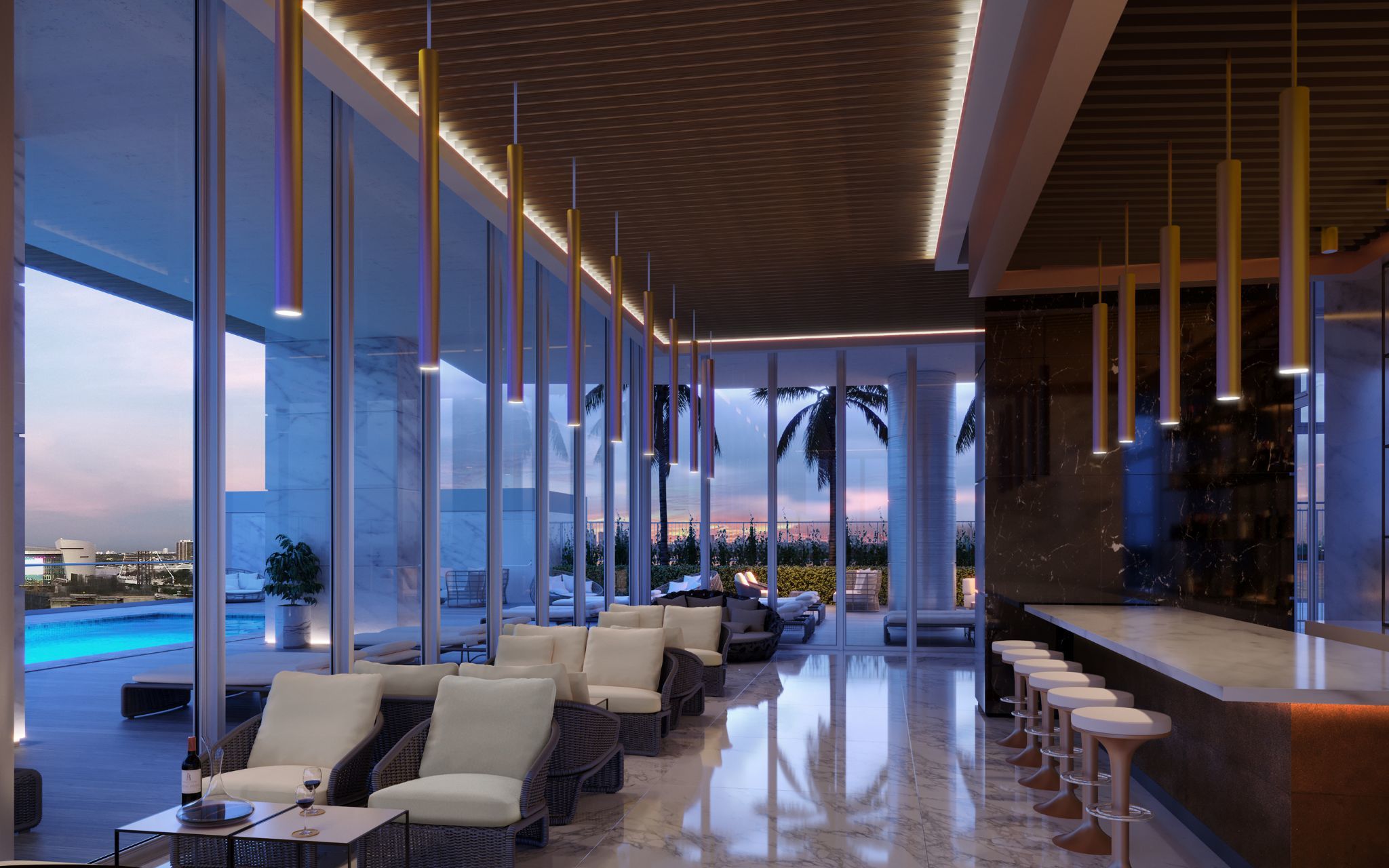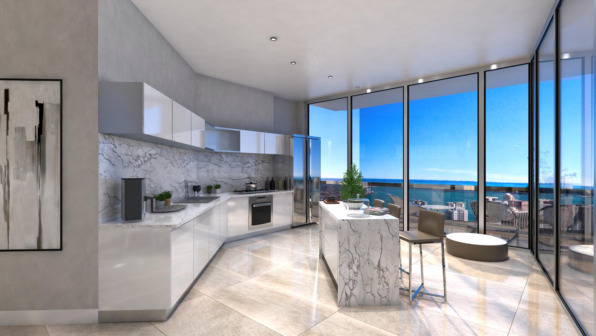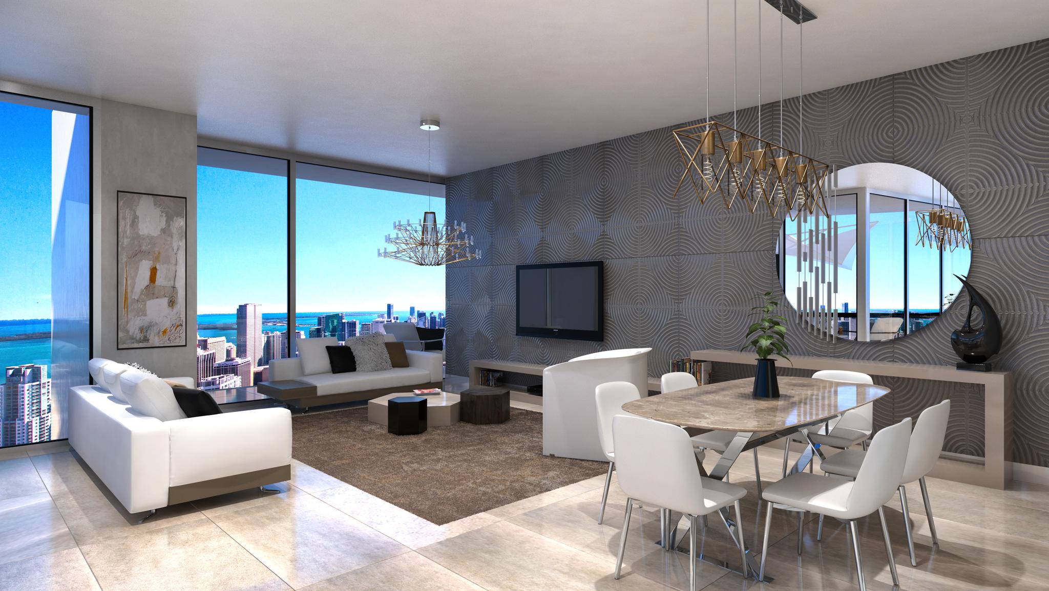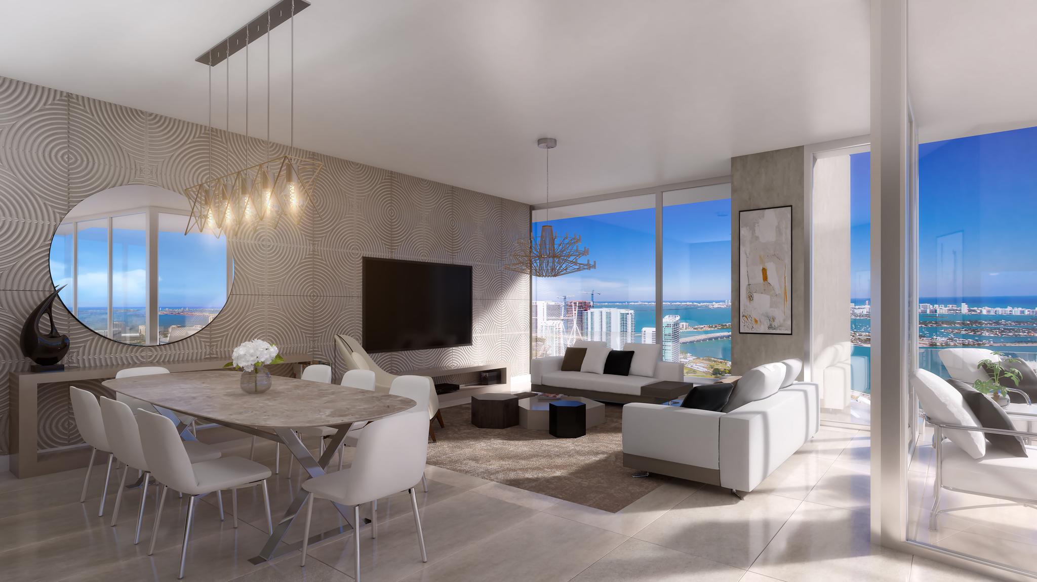 At the heart of Okan Tower are its 399 residential units, split between its Condo-Hotel units and its Sky Residences. The builidng houses condos ranging from studios - to three-bedroom apartments and penthouses, all featuring high-end finishes, modern appliances, and expansive balconies. The tower also features a number of exclusive amenities for residents, including a private lounge, a wine cellar, and a movie theater. Okan Tower is set to become an impressive and iconic building that stands out in Miami's skyline, offering a unique and luxurious living experience in one of the most vibrant and dynamic cities in the world.