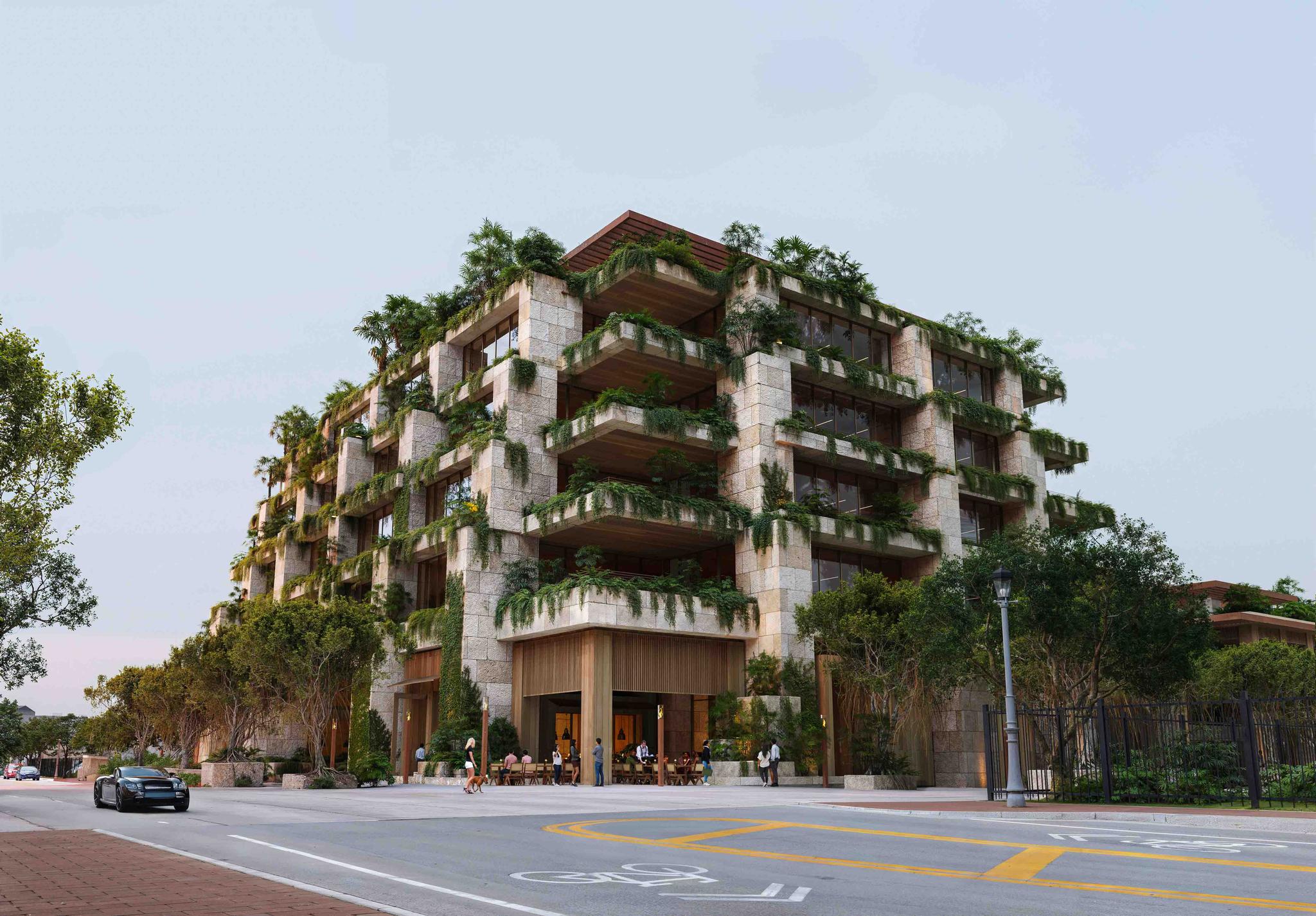 Envisioned by the renowned Oppenheim Architecture and brought to life with interiors by Collarte Interiors, Ziggurat stands as a testament to biophilic design. The structure's stepped formation, inspired by ancient ziggurats, seamlessly integrates cascading greenery, natural oolite stone, and expansive terraces, fostering an environment where the boundaries between indoors and outdoors dissolve.